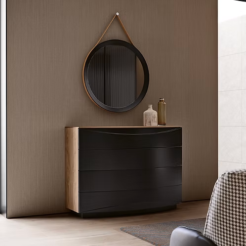Espelho circular com um design contemporâneo, ideal para um espaço com linhas modernas.