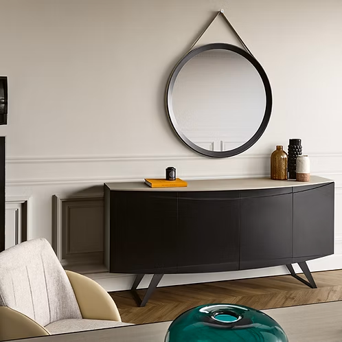 Espelho circular com um design contemporâneo, ideal para um espaço com linhas modernas.