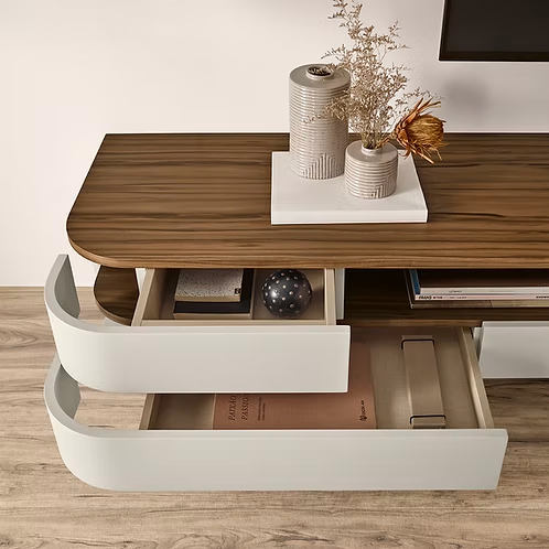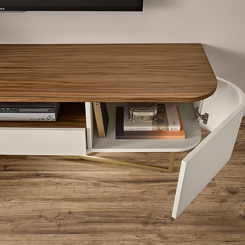 Móvel de TV com pé de ferro e várias divisões. Design elegante e moderno, o móvel certo para a sua sala de estar.