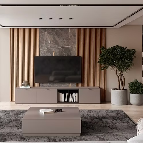 Este móvel TV com 3 portas de cair e 1 nicho é a escolha ideal para quem procura um design simples e prático. Com bastante espaço para armazenar equipamentos e acessórios, garante um ambiente arrumado e moderno, perfeito para qualquer sala de estar.